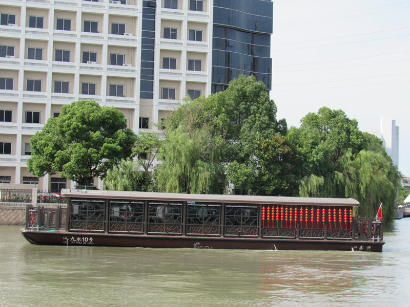 該船外觀及內飾緊緊圍繞“紅船魂? 江南韻 ? 運河情?國際范”的主題展開,整體采用仿古木藝的中式裝修風格,充分彰顯嘉興江南水鄉(xiāng)、的文化魅力。
