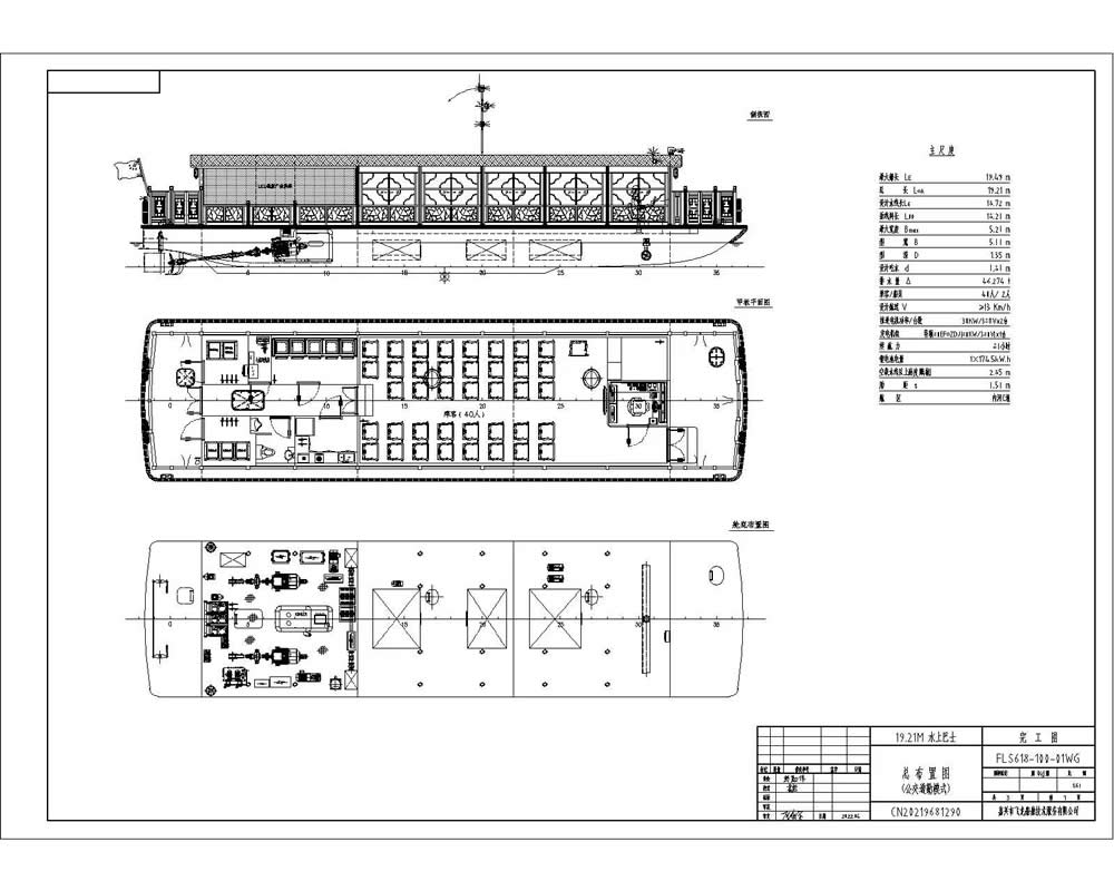 本船為鋼鋁結構、單甲板、單底、單舷、尾機型、雙電機、雙槳、雙舵、混動電力推進的船舶,航行于浙江嘉興內河水域,是集水上交通客運、商務接待等為一體的綜合性客船,本船具備夜航功能。